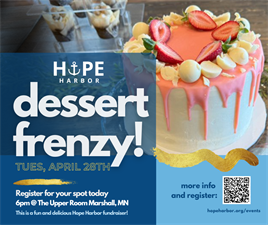 Join us for a night of fellowship, music, stories, Singo, appetizers and delicious gourmet desserts in a frenzy of support for Hope Harbor!